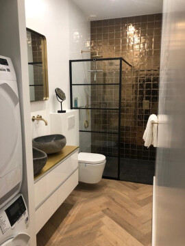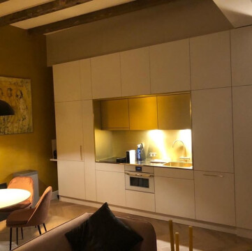 The appartment is equipped with new furniture and a comfortable size bed. A well equiped kitchen, bathroom with shower, dining table, seating area, TV and WiFi.