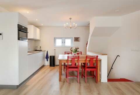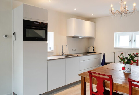 op de eerste verdieping is er een woonkamer, met uitzicht op de molenstraat en de uilenburg. Er is een complete keuken voorzien
