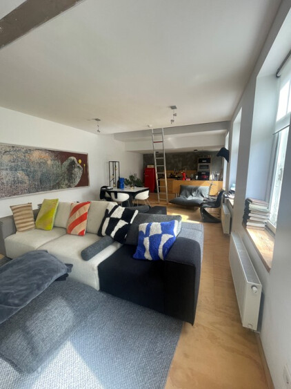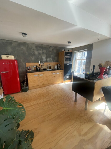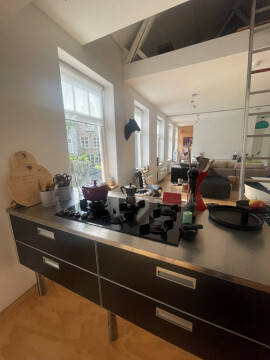 Op de eerste verdieping ligt dit gemeubileerde appartement. Het heeft een open keuken met kookplaat en afzuigkap, koelkast.