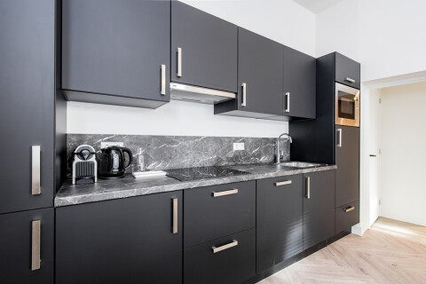 Ideal for one or two occupants, these apartments feature a beautiful open kitchen and dining area, comfortable living and working space, and a double bed to relax at the end of a long day. The apartments can be rented to expats for a maximum 6 of months.