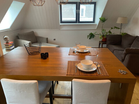 Furnished one bedroom apartment city centre Den Bosch. Kitchen with dishwasher, fridge and microwave/oven. Roof-terrace and storage room for a bike. Airconditioning and heating. Rent is exclusive of utilities