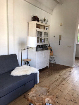 Bij binnenkomst is de hal waaraan de slaapkamer, badkamer en bergruimte is gelegen. Via de open trap kom je in be boven verdieping welke woonkamer en keuken is. Deze is voorzien van een mooie houten vloer