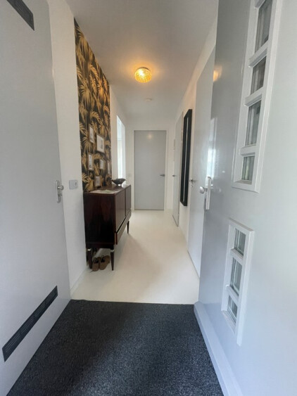 Ruime entree/hal met de meterkast en toegang tot alle vertrekken. De woonkamer is gelegen aan zijkant van het complex en is daardoor erg rustig gelegen.