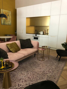 The apartment is equipped with new furniture and a comfortable size bed. A well equipped kitchen, bathroom with shower washer and dryer, dining table, seating area, TV and WiFi.